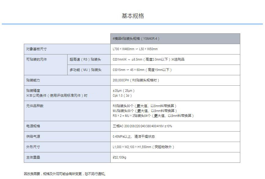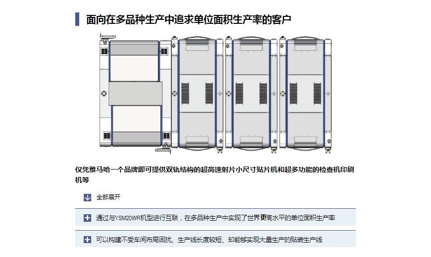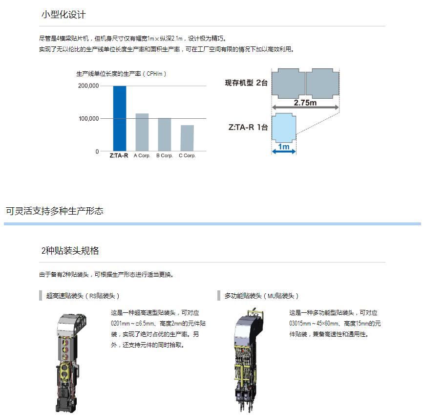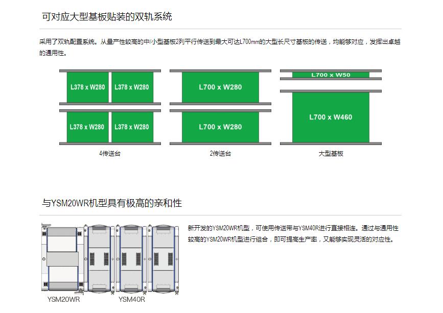 Z:TA-R YSM40R超高速模塊貼片機(jī) 1.采用小巧的平臺構(gòu)造,達(dá)成了世界更高水平的貼裝速度20萬CPH※,實(shí)現(xiàn)了生產(chǎn)率的全面革新。2.全球更高生產(chǎn)率。3.靈活支持多種生產(chǎn)形態(tài)。4.支持高品質(zhì)貼裝和高運(yùn)轉(zhuǎn)率的技術(shù)?!号c4橫梁/4貼裝頭的同級別貼片機(jī)在更佳條件下的貼裝能力(CPH)對比?;?016年4月本公司的調(diào)查結(jié)果。