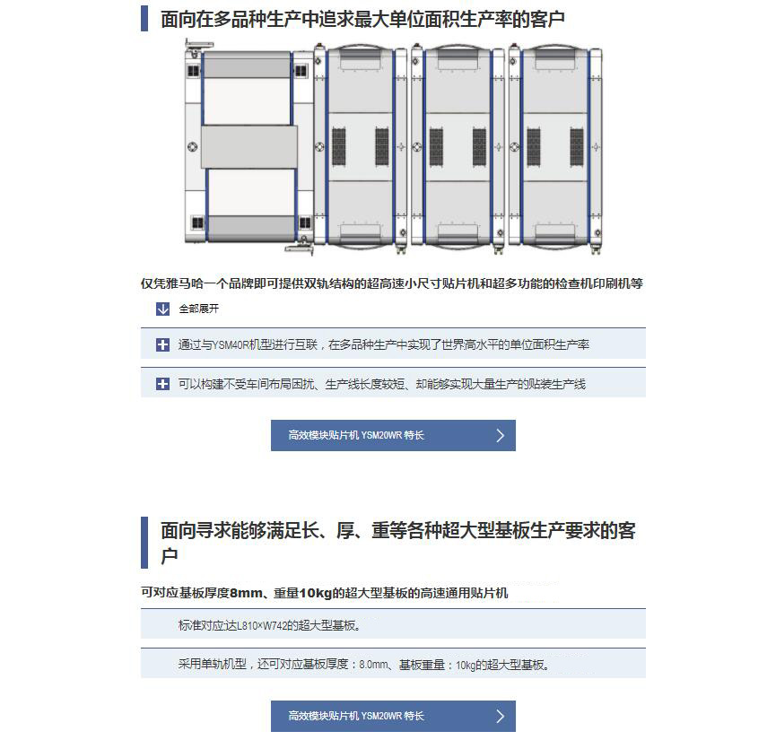 YSM20WR 高效模塊貼片機(jī)1.進(jìn)一步極限改進(jìn)“高速通用一體化貼裝頭”,在同級別產(chǎn)品中達(dá)到更快貼裝速度的萬能型貼片機(jī)。2.大幅升級“高速通用一體化貼裝頭”,在世界同級別產(chǎn)品中更快的萬能型表面貼片機(jī)。3."高速通用一體化貼裝頭”同時實(shí)現(xiàn)高速性與通用性,提供理想的解決方案"。4.可廣泛貼裝各種元件,完美詮釋 “L…