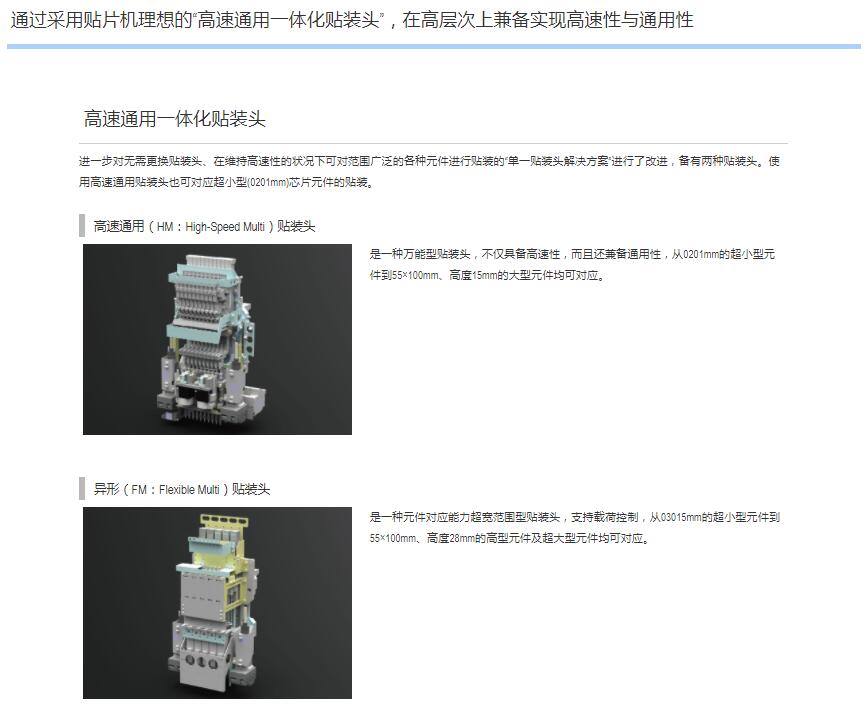 3."高速通用一體化貼裝頭”同時實(shí)現(xiàn)高速性與通用性,提供理想的解決方案"。